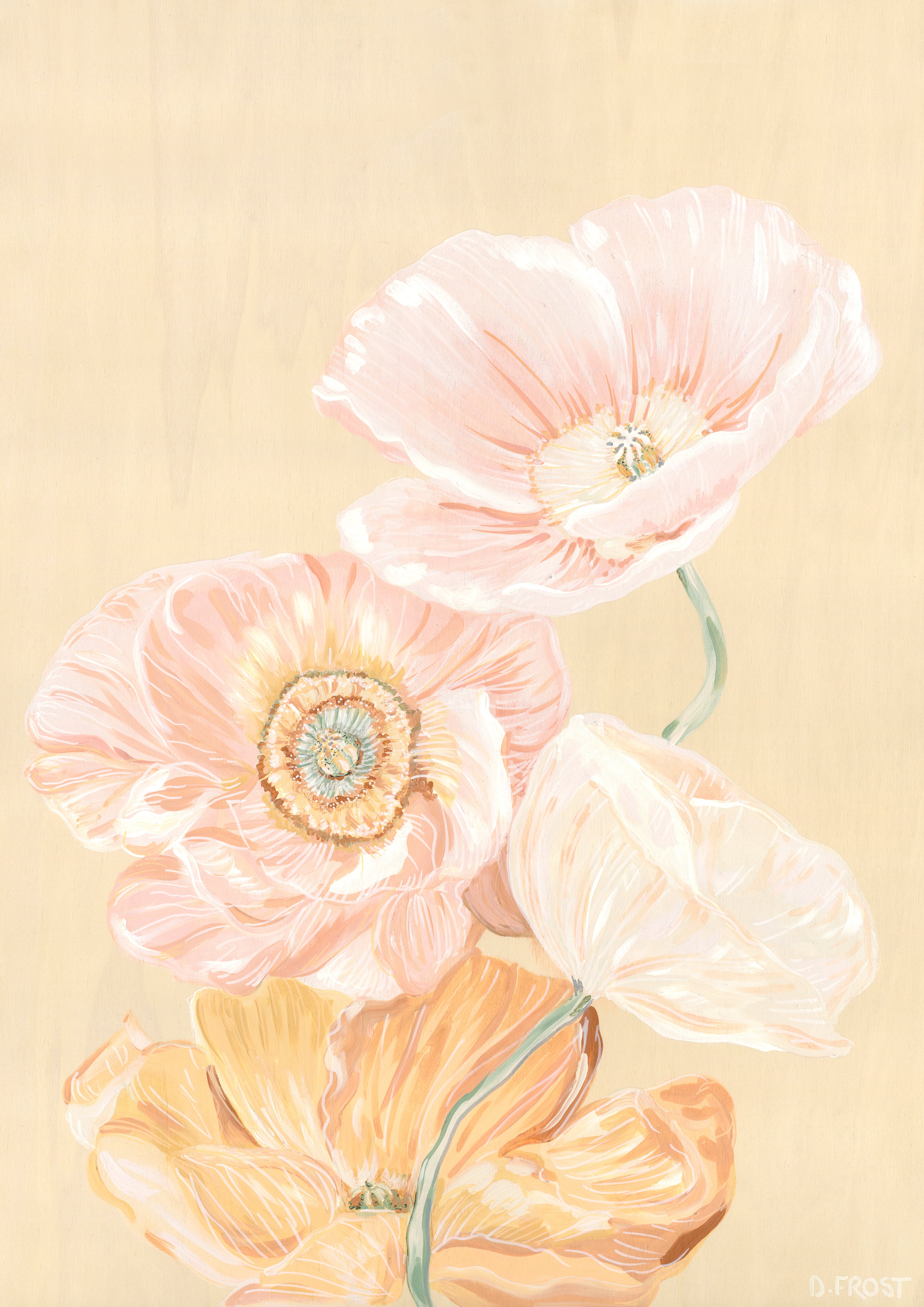 An artwork of Poppies in bloom, giving you that feeling of the first few days of spring