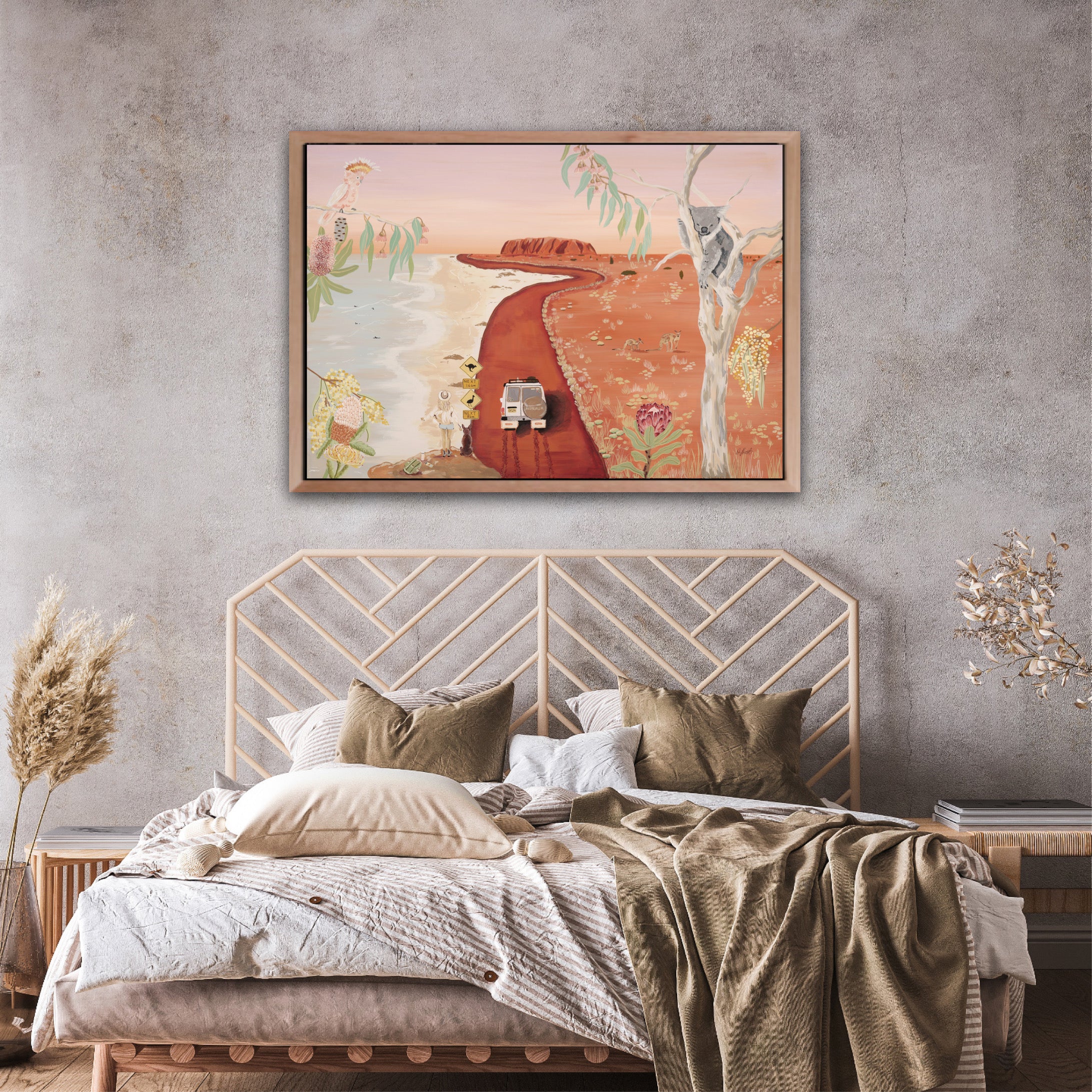 I fell in love with this piece the moment Deli posted it on her page. I knew I had to have it in my home! My fiancé and I love travelling in our car and we have a dream to do a lap around Australia one day, so this piece feels really special to us! The quality of the canvas and the frame is absolutely beautiful. Deli recently customised our piece to include us, our Land cruiser and even our two dogs which made it extra special! We absolutely love it and have had so many compliments from friends and family. We love your work Deli!!