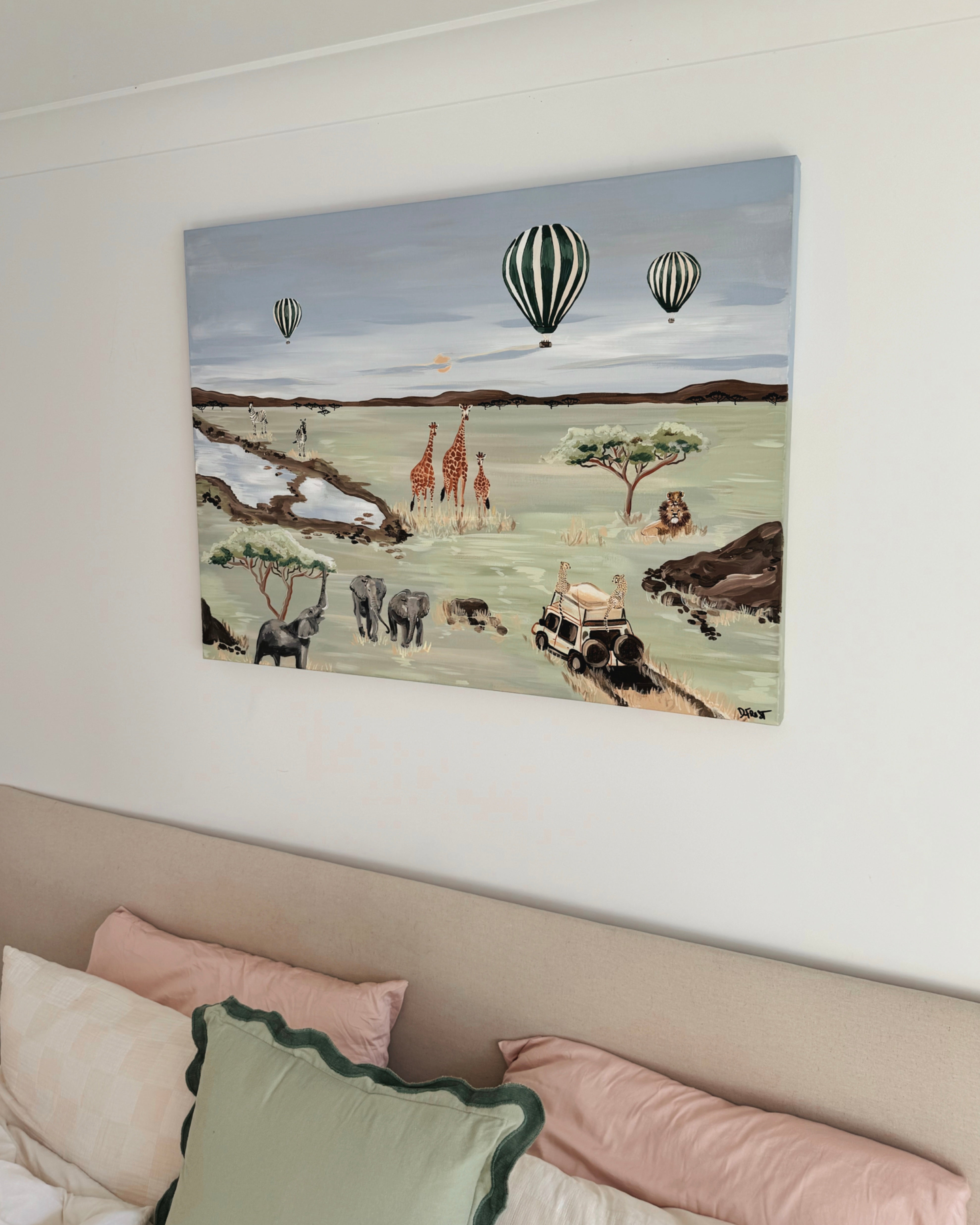 Each artwork in the collection is inspired by a destination that has left a mark on me — whether it’s the golden stillness of the Australian outback, the turquoise waters of the Mediterranean, the snow-dusted slopes of alpine towns, or the sun-soaked energy of Hawaii. From rustic farmsteads to coastal surf scenes, from African safaris to cobblestone villages in Italy, these paintings are layered with memory, story, and sunshine.