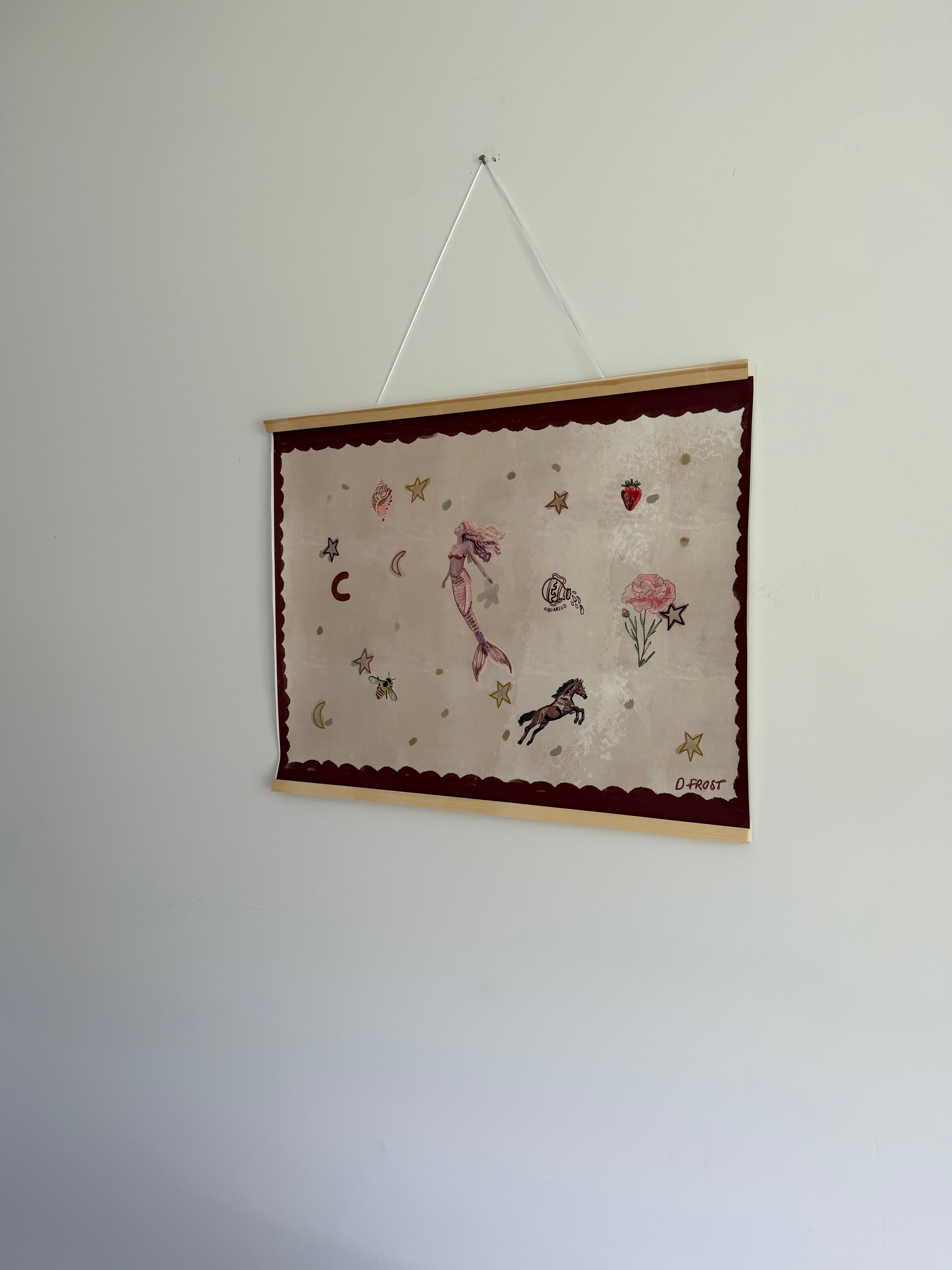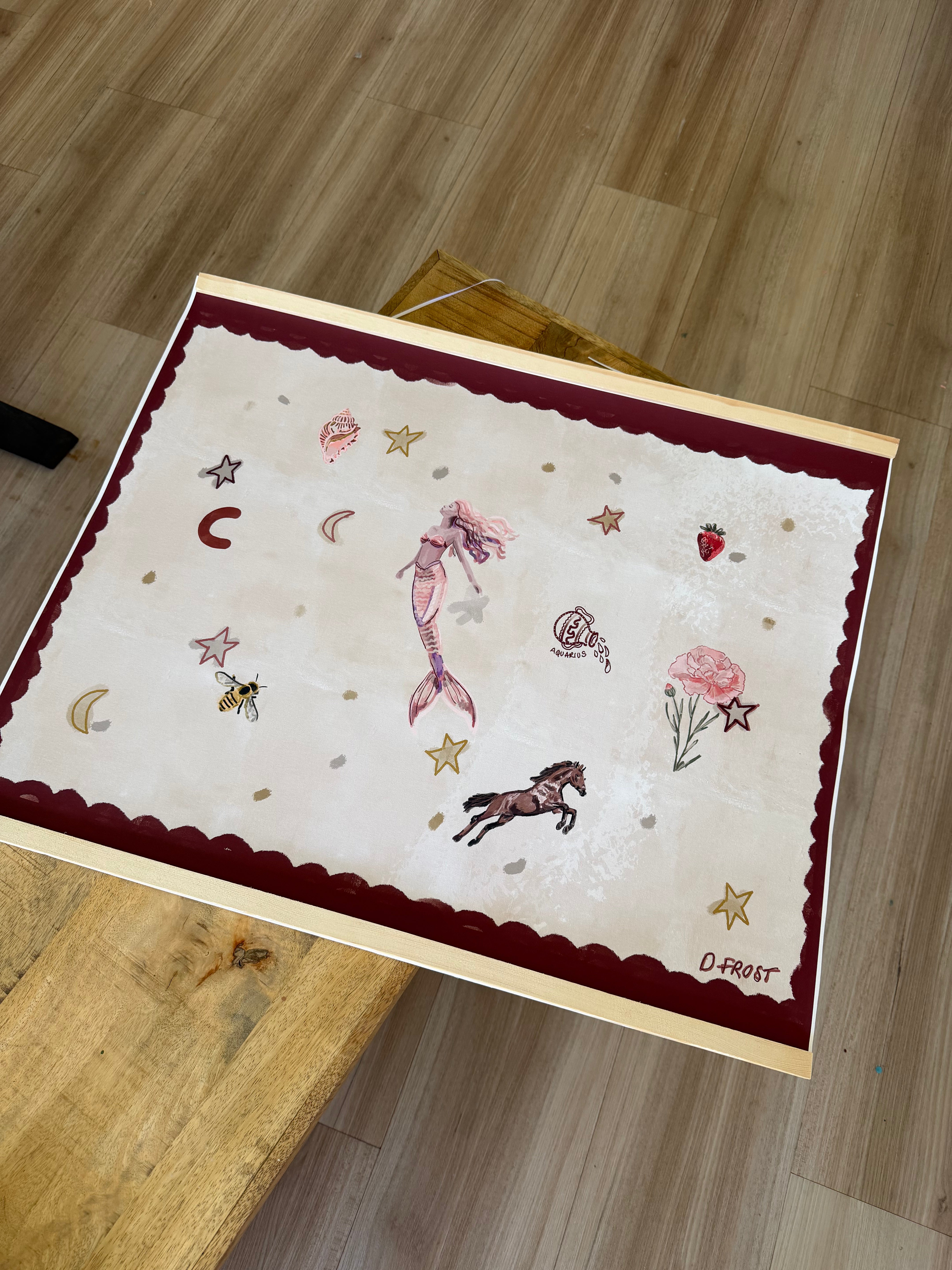 • PLEASE SPECIFY IN YOUR EMAIL WHETHER YOU WANT AN EXTRA BORDER AROUND THE ARTWORK TO STRETCHED IT ON TO A CANVAS OR WHETHER YOU'D LIKE IT LIKE THE ATTACHED PHOTOS TO HANG FREELY AS YOU WISH.