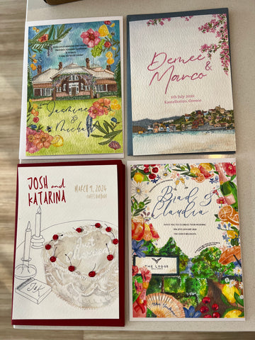We recommend starting your custom invitation design 3–6 months before your wedding. The design process typically takes 2–4 weeks, however depending on current work load & waitlist this can vary quite a lot so please make sure you book in as early as you can. Followed by printing and production time.