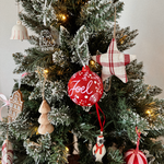 Our baubles are 8cm diameter and the composition is ceramic, making the baubles extremely fragile, please put at the top of the Christmas tree/out of reach of children & animals. All baubles come with individual Gift Boxes with a gift tag message of your choice added, the boxes are perfect to use after Christmas to safely pack you're baubles away for next year.