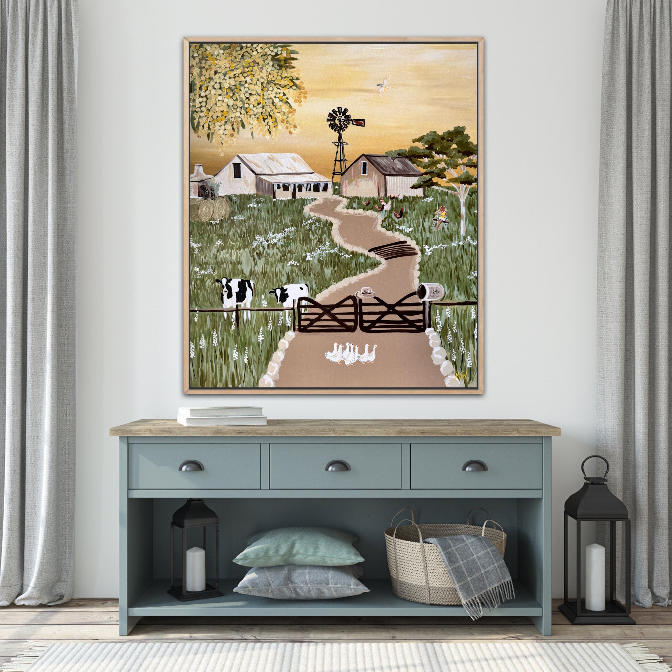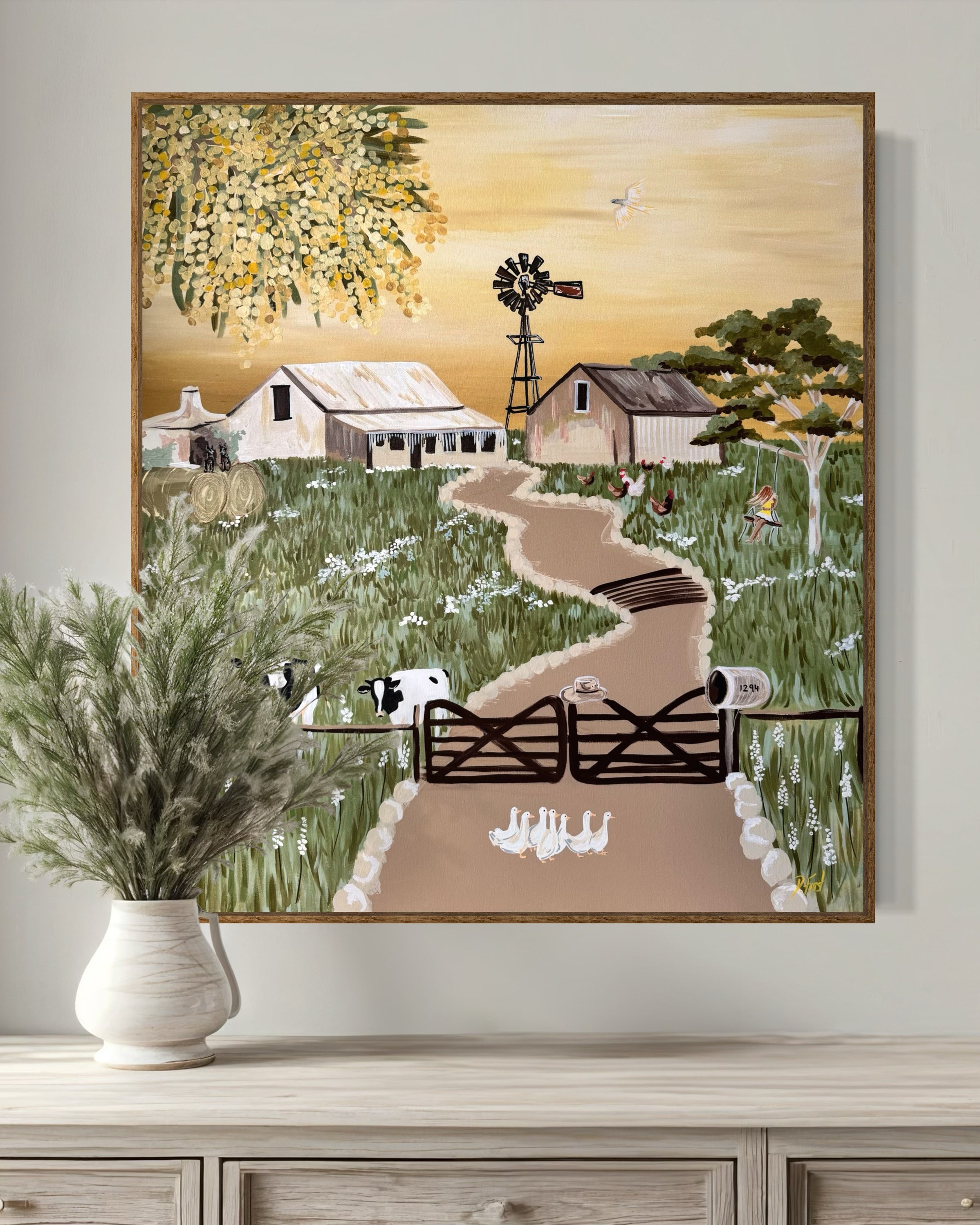 I bought this farm painting as a birthday present for my best friend, and it couldn’t have been more perfect. The artwork is stunning, full of warmth, detail, and that calm countryside charm. It arrived beautifully packaged and exactly as pictured, if not better in person. You can really feel the heart and care that went into creating it. Highly recommend this piece for anyone wanting something special and soulfully made.